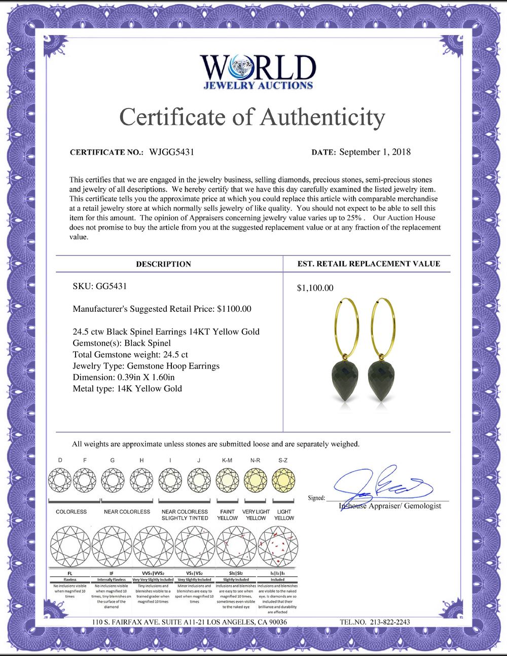Genuine 14K Yellow Gold 24.5 ctw Black Spinel Earrings