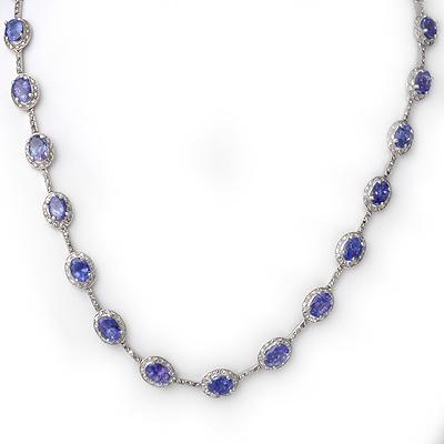 Diamond: 72 Round cut @ 1.0 ctw---- Clarity: SI-I---- Color: H-K----Gemstone: Natural Tanzanite----Gemstone color: Purple----Gemstone quality: Good-to-Very Good----Gemstone Cut & Weight: 25 Oval cut @ 24.0 ctw----Metal Purity & Color : 10K Gold-White----Gold weight: 25.7 grams----Dimension: Approx. 16 1/4 x 1/4Consignor: World Jewelry Outlet----Delivery: Within 10 business days