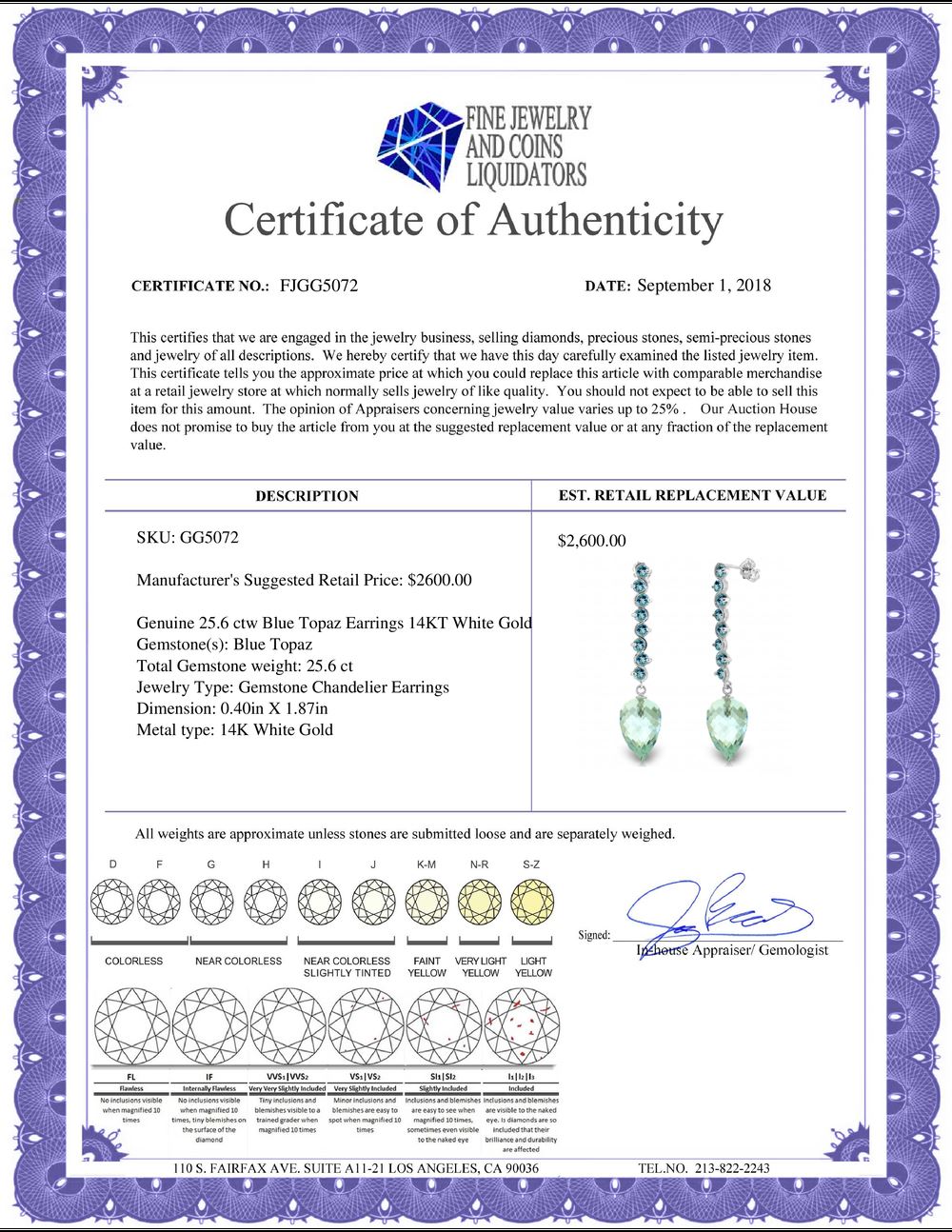 REF-85Z6N - SKU: GG5072 ---- Genuine 25.6 ctw Blue Topaz Earrings 14KT Rose Gold