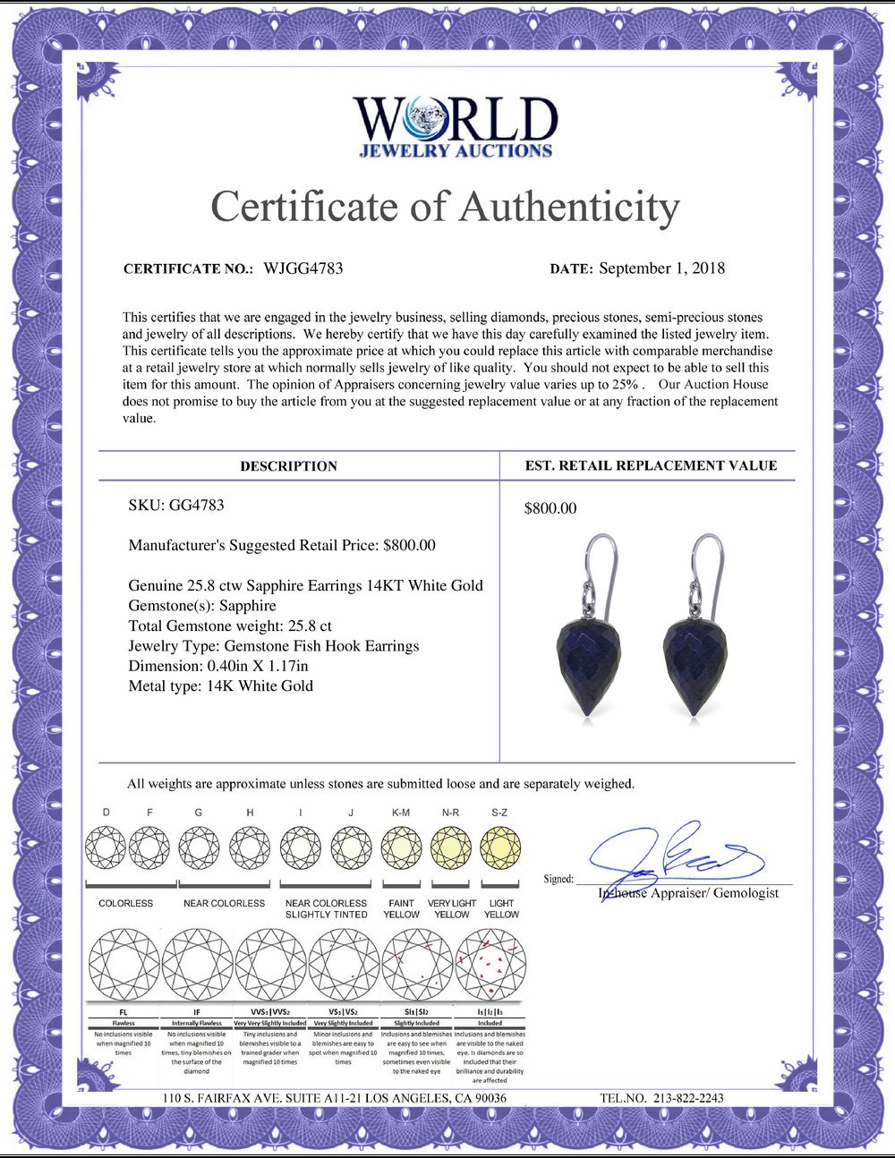 REF-25N6R - SKU: GG4783 ---- Genuine 25.8 ctw Sapphire Earrings 14KT White Gold