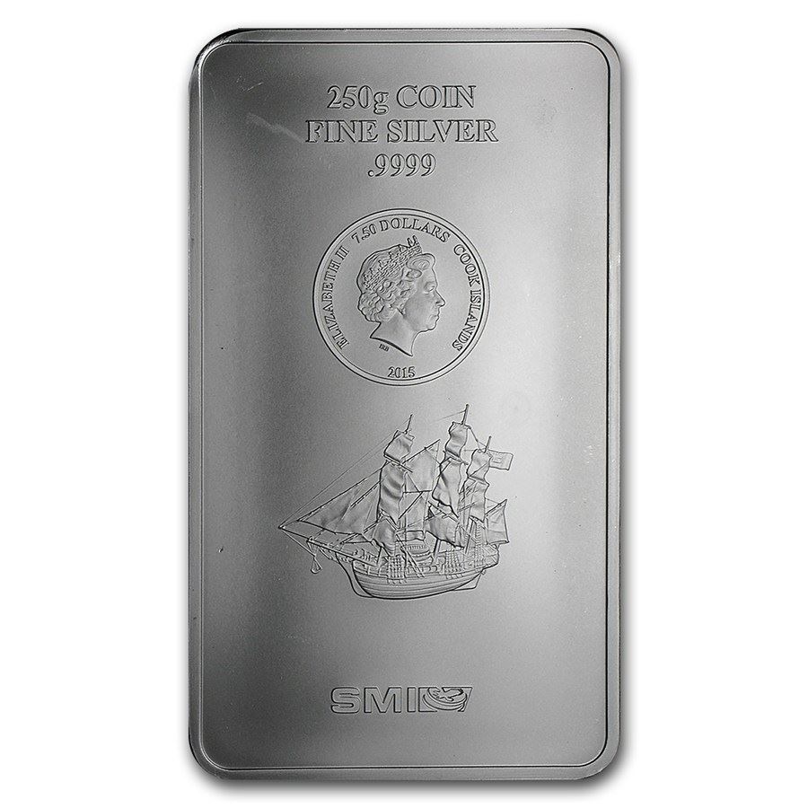 One piece Genuine 250 gram 0.999 Fine Silver Bar - Cook Islands Bounty