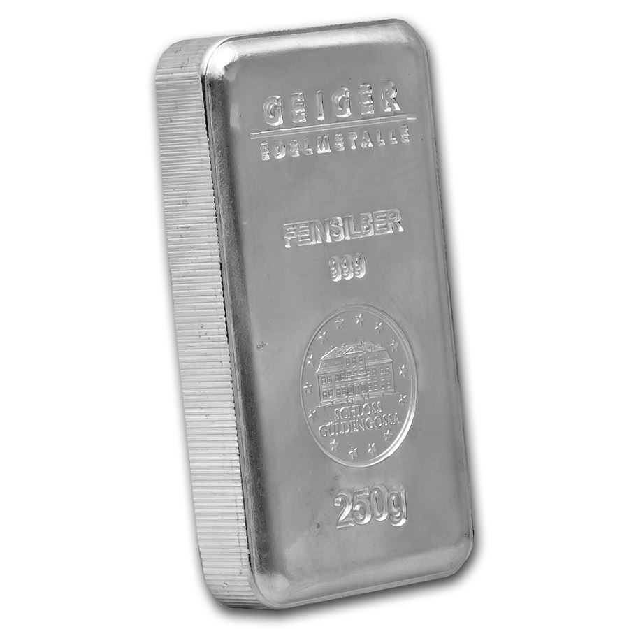 SKU: 74692 - One piece Genuine 250 gram 0.999 Fine Silver Bar - Geiger Security Series