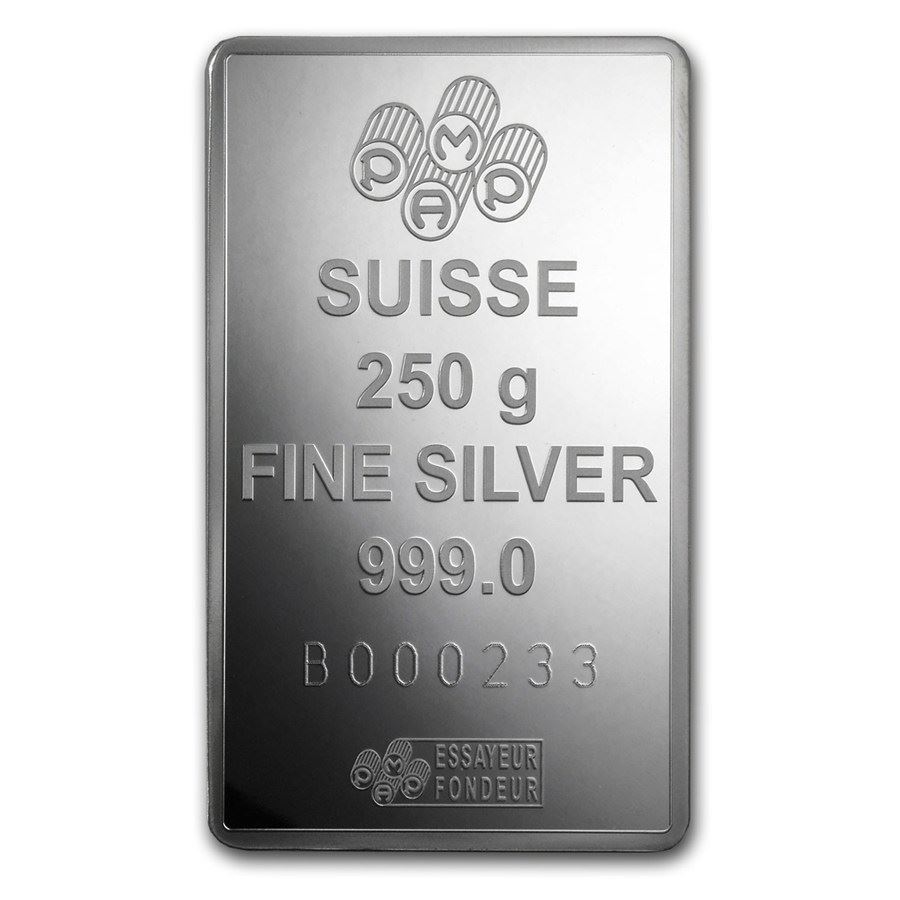 SKU: 65696 - One piece Genuine 250 gram 0.999 Fine Silver Bar - PAMP Suisse Fortuna