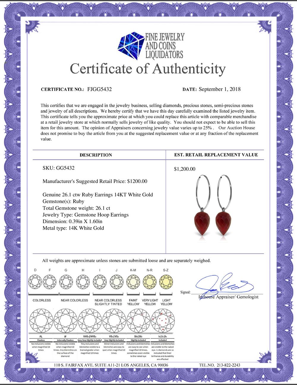 REF-36V9W - SKU: GG5432 ---- Genuine 26.1 ctw Ruby Earrings 14KT White Gold
