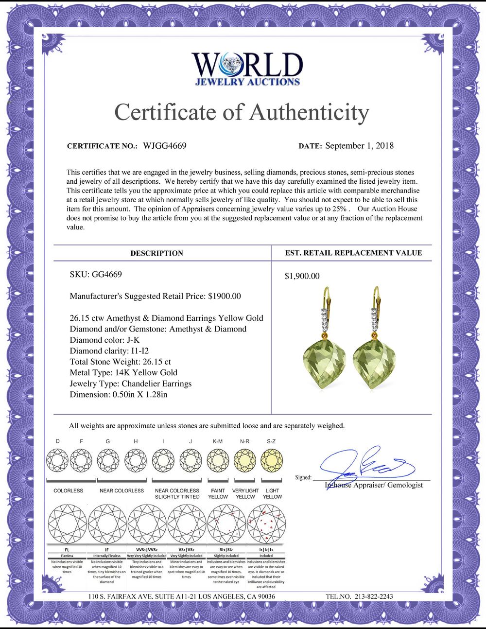 REF-61T6A - SKU: GG4669 ---- Genuine 26.15 ctw Amethyst & Diamond Earrings 14KT Yellow Gold