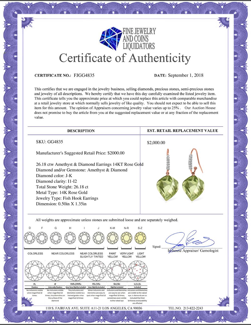 REF-66Z5N - SKU: GG4835 ---- Genuine 26.18 ctw Amethyst & Diamond Earrings 14KT Rose Gold