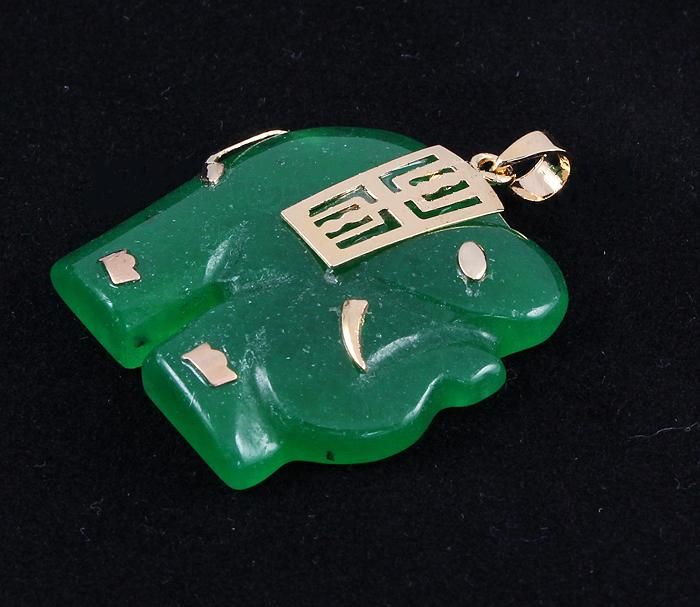 Genuine 26.88ctw Elephant Jade Pendant **|**|** Good Fortune 18KGP (Gold Plated) Silver Elephant Green Jade Pendant measuring 24.18x23.46mm ; MSRP: $300