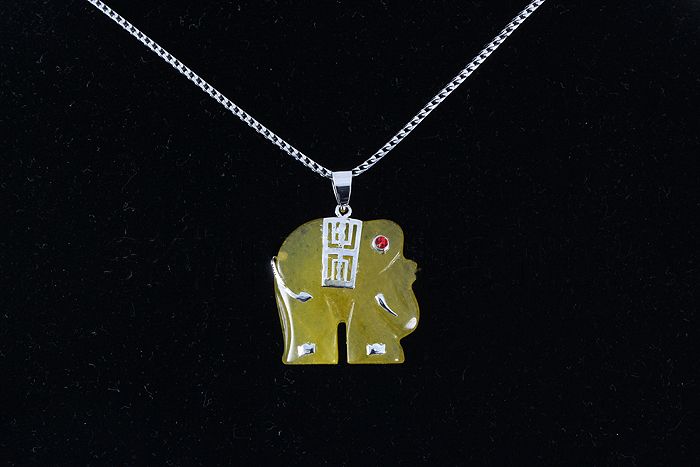 Genuine 27.82ctw Yellow Elephant Jade Pendant **|**|** Good Fortune 18KGP (Gold Plated) Silver Elephant Yellow Pendant measuring 24.18x23.46mm ; MSRP: $300