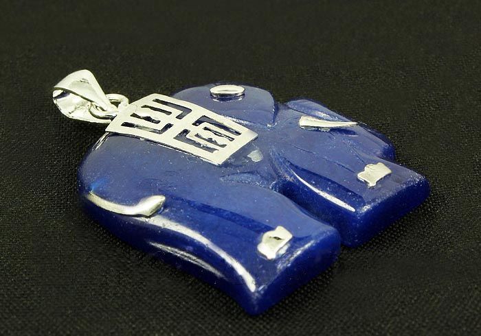 Genuine 29.00ctw Blue Elephant Jade Pendant **|**|** Good Fortune 18KGP (Gold Plated) Silver Elephant Blue Pendant measuring 24.18x23.46mm ; MSRP: $300