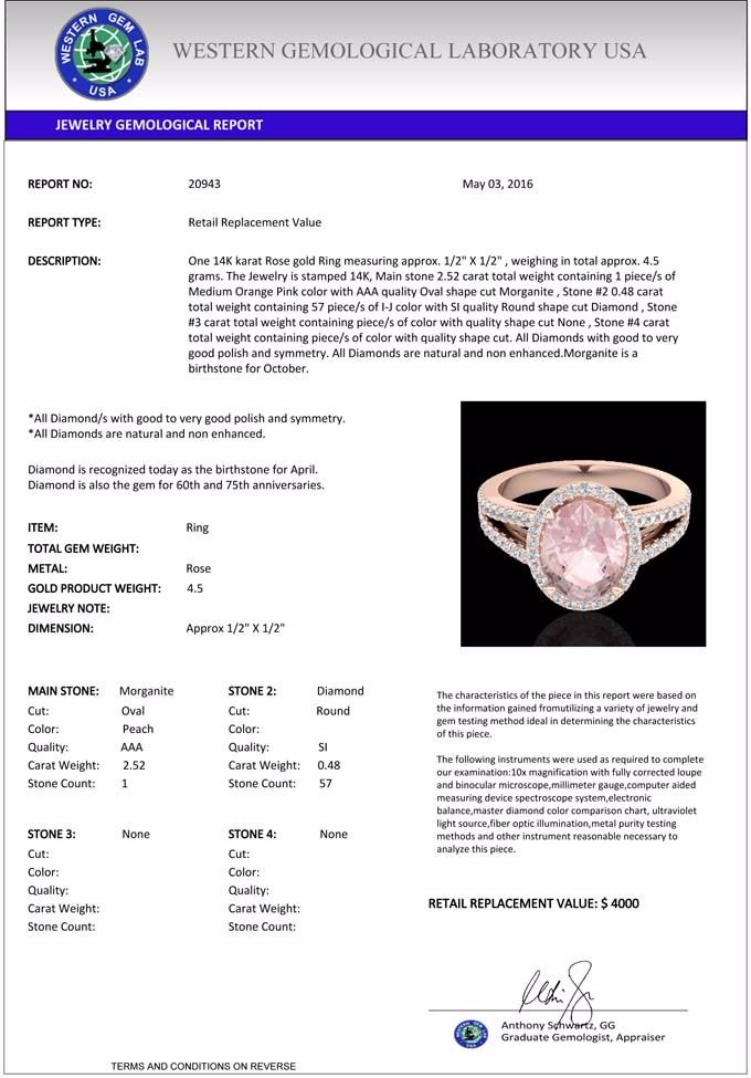 total approx. 4.5 grams. The Jewelry is stamped 14K, Main stone 2.52 carat total weight containing 1 piece/s of Medium Orange Pink color with