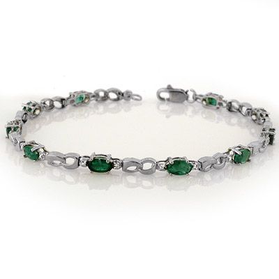 Genuine 3.01 ctw Emerald & Diamond Bracelet White Gold - Retails for $1140 ---- Diamond: 1 Round cut @ 0.01 ctw---- Clarity: SI-I---- Color: H-K----Gemstone: Natural Emerald----Gemstone color: Green----Gemstone quality: Good-to-Very Good----Gemstone Cut & Weight: 10 Oval cut @ 3.0 ctw----Metal Purity & Color : 10K Gold-White----Gold weight: 4.60 grams----Dimension: Approx. 7 x 1/8----Shipping: Within 15 business days