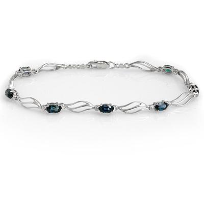 Diamond: 2 Round cut @ 0.02 ctw Clarity: SI-I Color: H-K Gemstone: Natural Sapphire Gemstone color: Blue Gemstone quality: Good-to-Very Good Gemstone Cut & Weight: 7 Oval cut @ 3.0 ctw Metal Purity & Color : 10K Gold-White Gold weight: 4.75 grams Dimension: Approx. 7" x 1/8"Consignor: World Jewelry Outlet Delivery: Within 10 business days