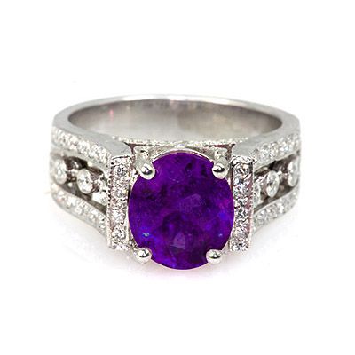 Genuine 3.04 ctw Amethystring 14Kt White/Yellow Gold **|**|** Gemstone: Amethyst ; Total CTW: 3.04 CTW ; Metal Purity: 14KT ; Metal: White or Yellow Gold ; Diamond Count 1: 92 ROUNDCUT ; Diamond CTW 1: 0.64 ; Clarity: SI1-SI2 ; Color: G-H ; Gems Count1: 1 Oval ; Gems Weight 1 / Carat: 2.4 ; Gems / Carat: 7 ; Color Violet ; Availability: 3-10 Business days, ready to ship, with certification of appraisal will take 2 weeks. ; MSRP: $2300