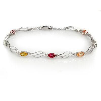 Gemstone: Multi Sapphire ; Diamond Clarity: SI1-SI2 ; Diamond Color: H-J ; Metal Purity: 10KT ; Metal: White ; Weight(g): 4.75 ; Diamond Count:2 Round Cut ; Diamond Weight: 0.03 ; Gemstone Cut: 7 Ovalcut ; Gemstone Weight: 3.02 ; Size/Dimension: Approx. Dim. 7"
