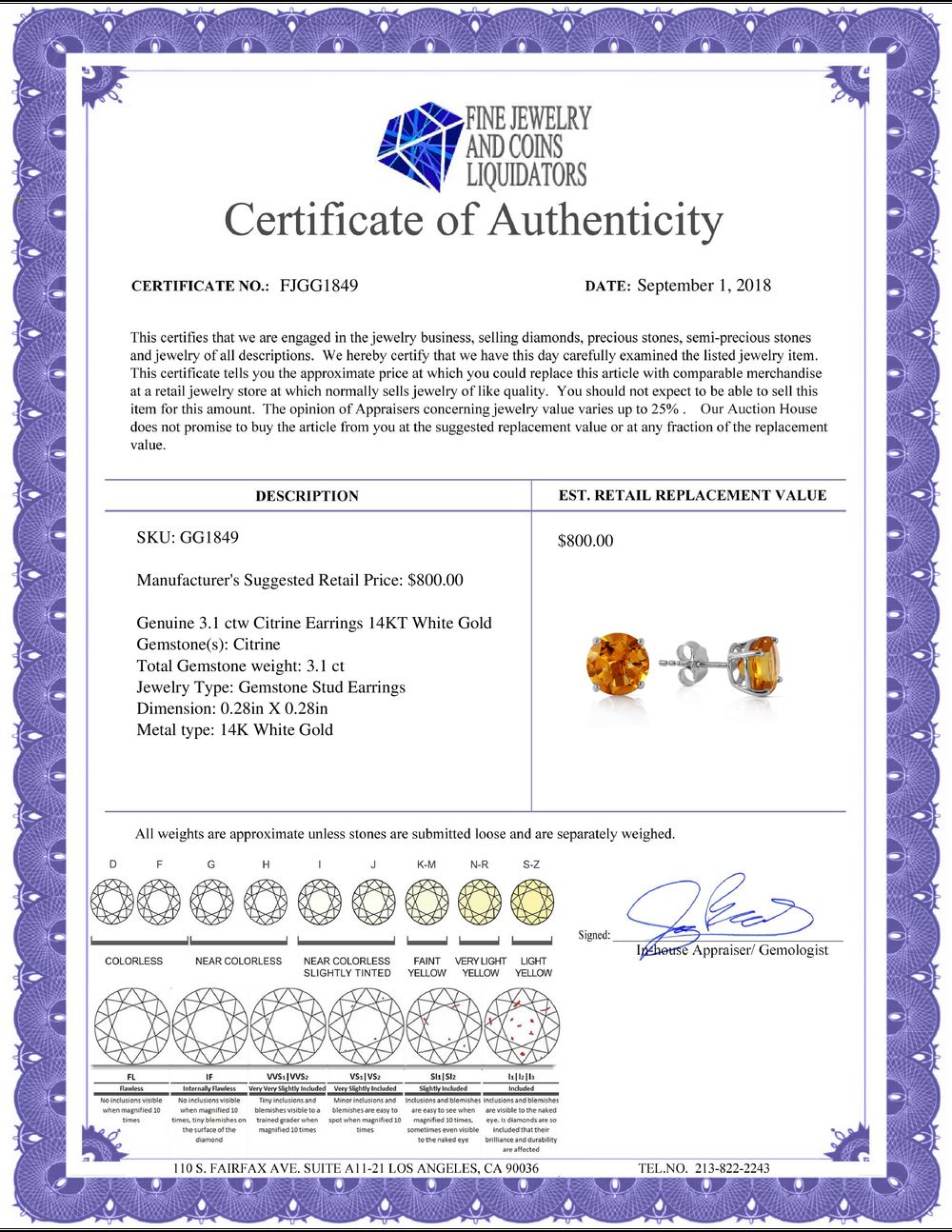 REF-23T9A - SKU: GG1849 ---- Genuine 3.1 ctw Citrine Earrings 14KT Rose Gold