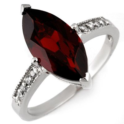 Genuine 3.1 ctw Garnet & Diamond Ring 10K White Gold - Retails for $730 ---- Diamond: 8 Round cut @ 0.10 ctw---- Clarity: SI-I---- Color: H-K----Gemstone: Natural Garnet----Gemstone color: Red----Gemstone quality: Good-to-Very Good----Gemstone Cut & Weight: 1 Marquise cut @ 3.0 ctw----Metal Purity & Color : 10K Gold-White----Gold weight: 2.60 grams----Ring size (US): 6.5----Dimension: Approx. 9/16 x 11/16--------Shipping: Within 15 business days