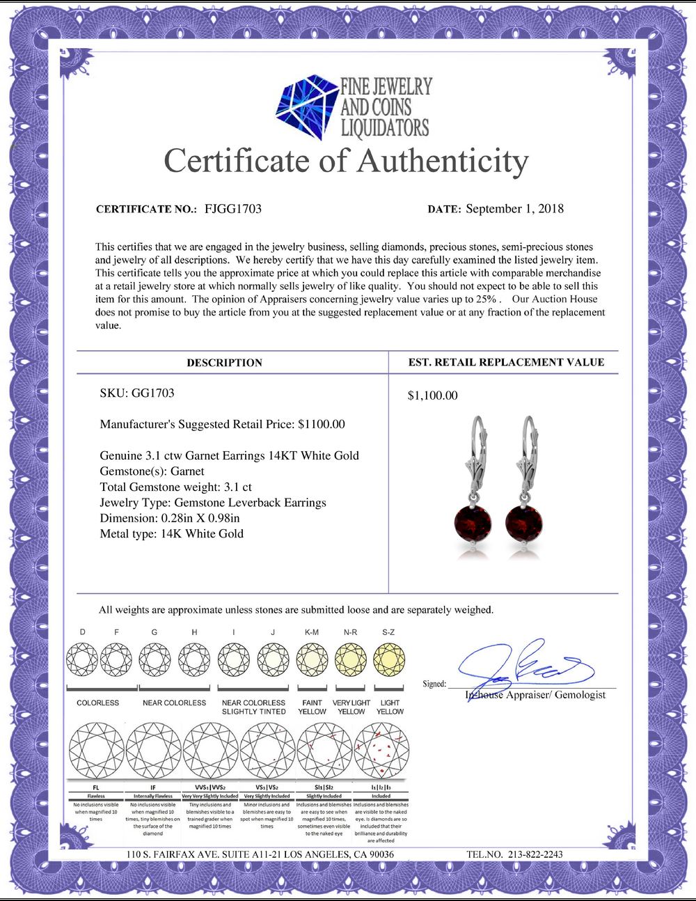 REF-34F3Z - SKU: GG1703 ---- Genuine 3.1 ctw Garnet Earrings 14KT Rose Gold