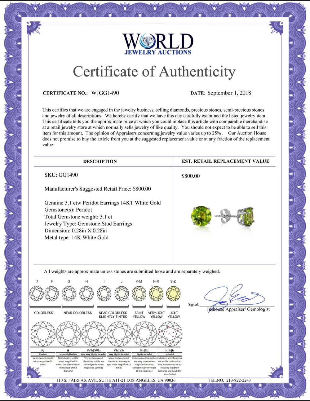 REF-23X9M - SKU: GG1490 ---- Genuine 3.1 ctw Peridot Earrings 14KT Rose Gold