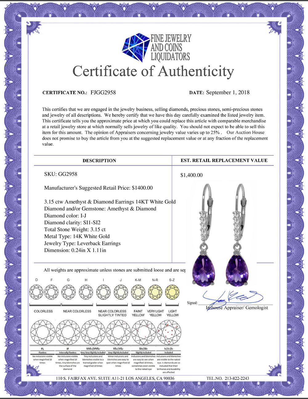 REF-44T3A - SKU: GG2958 ---- Genuine 3.15 ctw Amethyst & Diamond Earrings 14KT White Gold