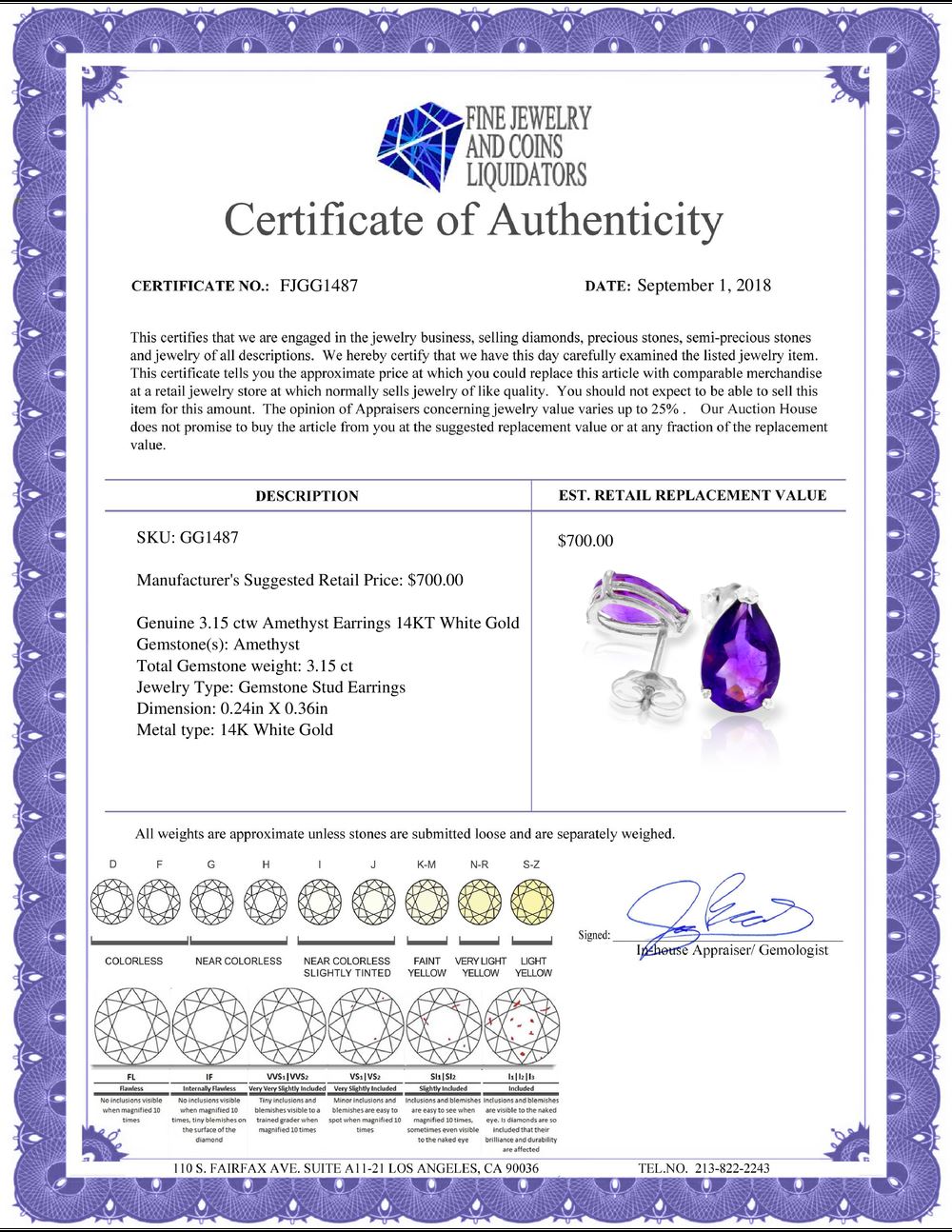 All Gia and EGL Diamonds are subject to availability due to consignors’ terms with us.