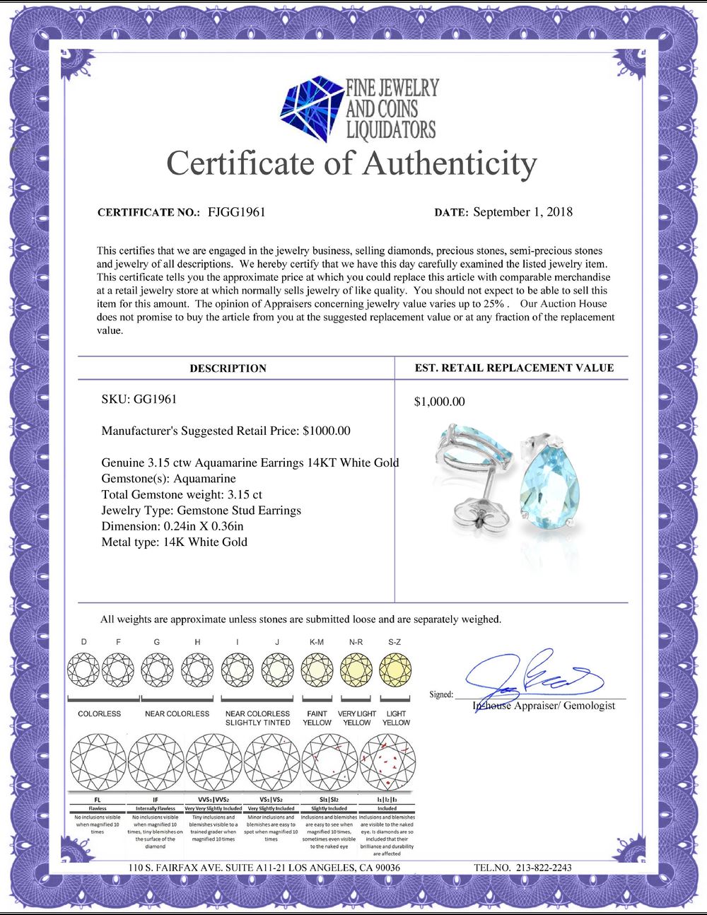 REF-30H2X - SKU: GG1961 ---- Genuine 3.15 ctw Aquamarine Earrings 14KT Rose Gold
