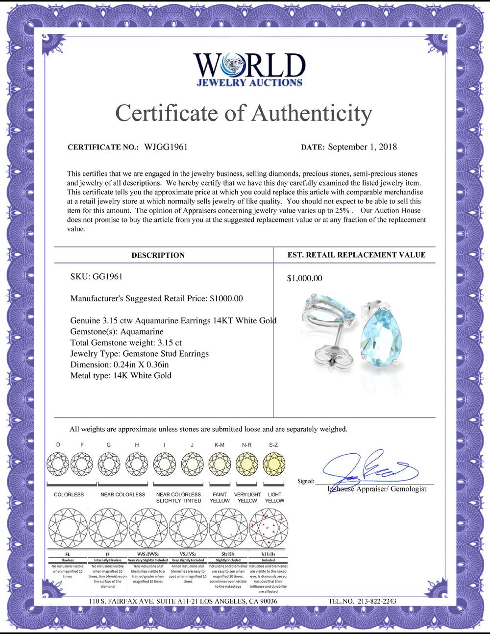 REF-30H2X - SKU: GG1961 ---- Genuine 3.15 ctw Aquamarine Earrings 14KT Rose Gold