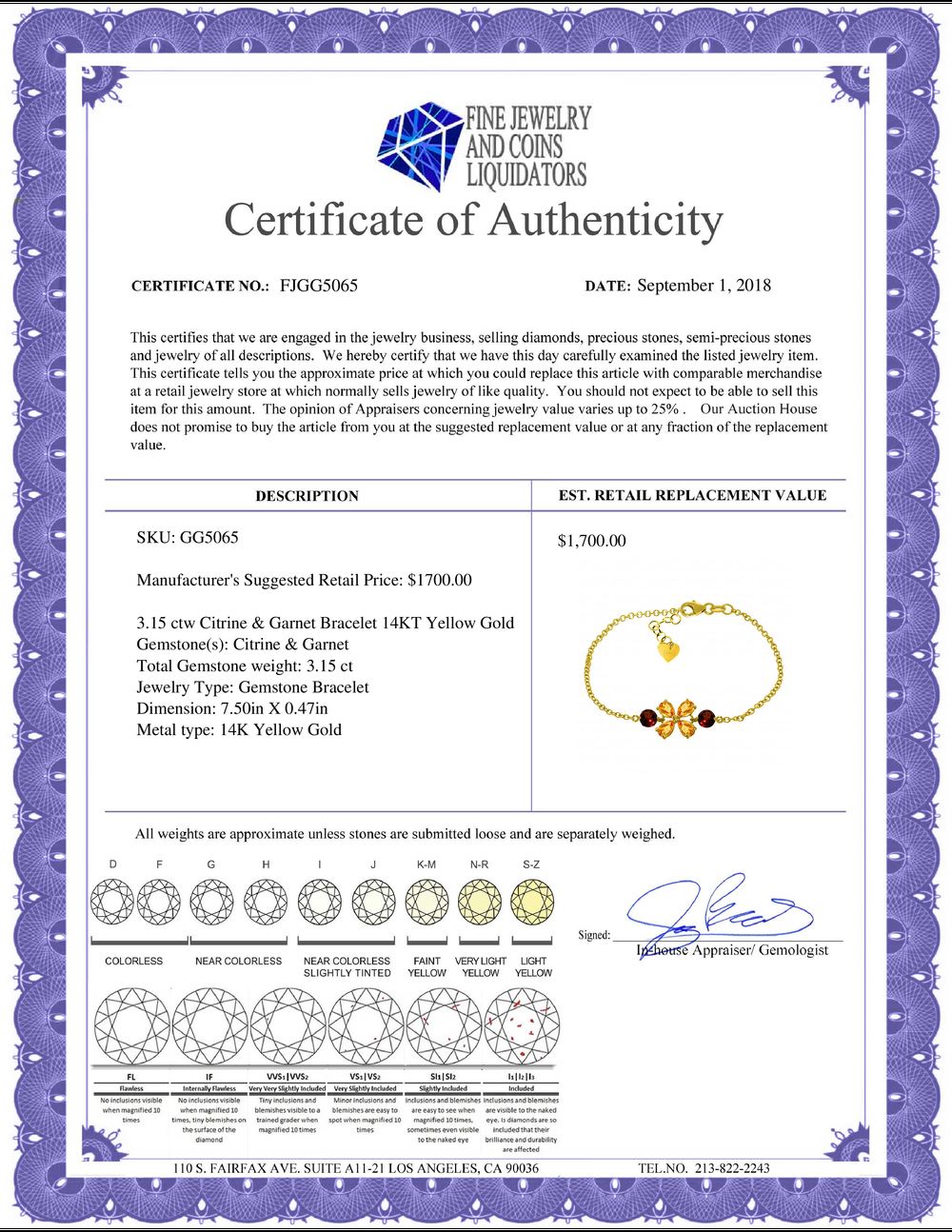 REF-56V4W - SKU: GG5065 ---- Genuine 3.15 ctw Citrine & Garnet Bracelet 14KT Yellow Gold