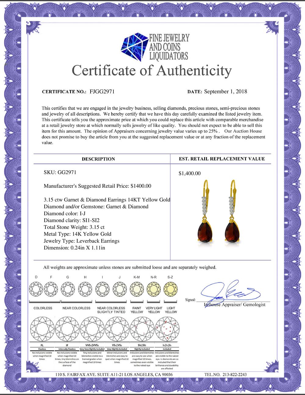 Genuine 14K Yellow Gold 3.15 ctw Garnet & Diamond Earrings