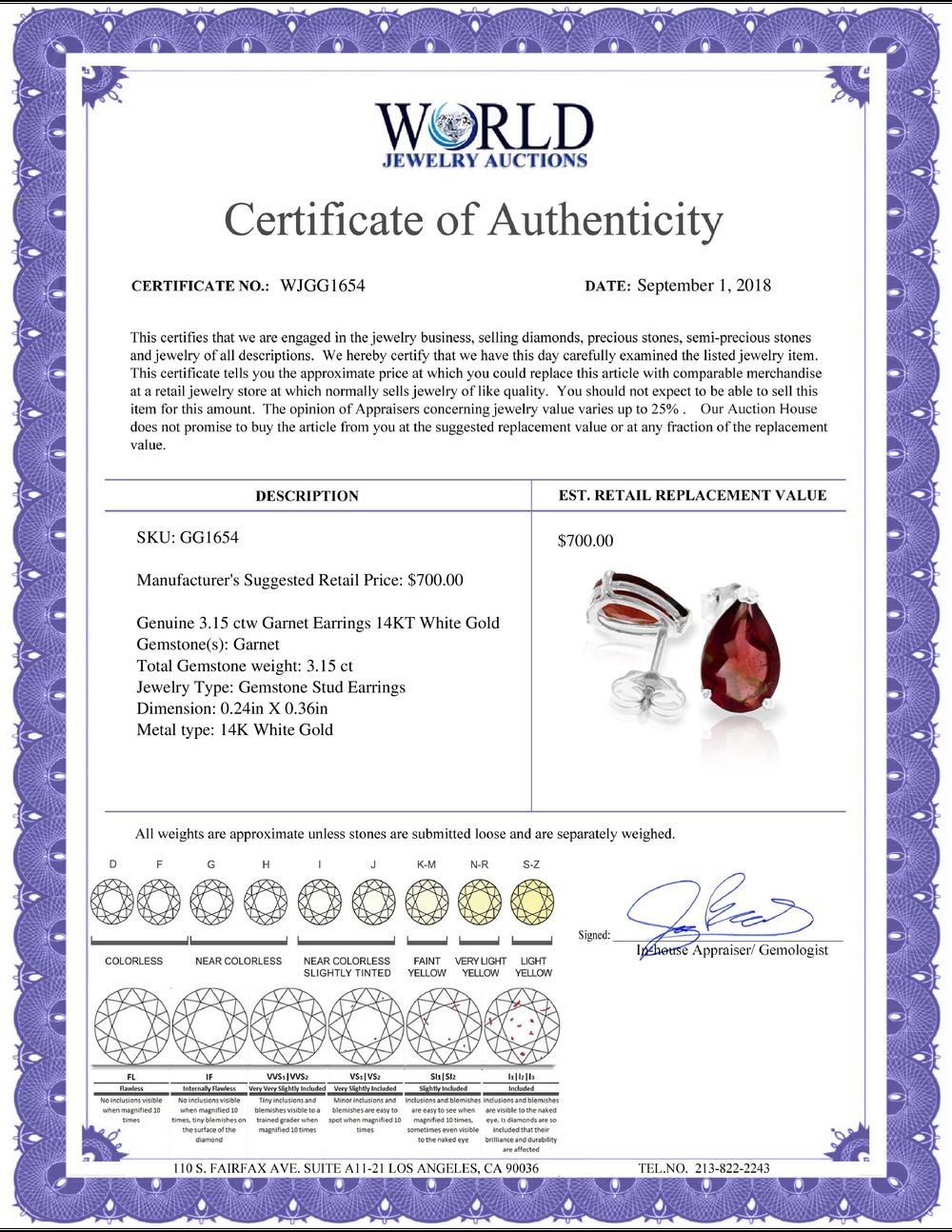 REF-21Z2N - SKU: GG1654 ---- Genuine 3.15 ctw Garnet Earrings 14KT White Gold