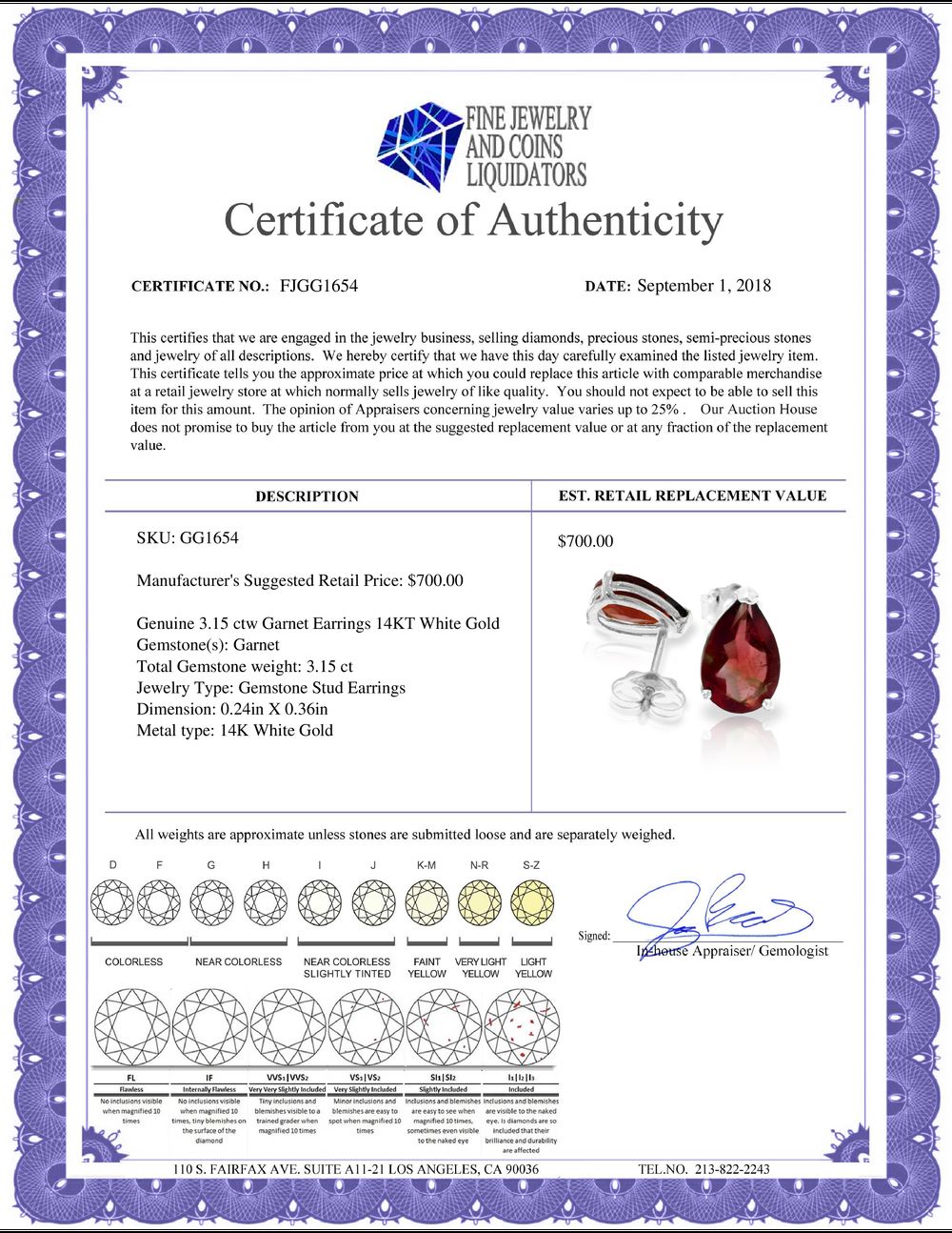 REF-21Z2N - SKU: GG1654 ---- Genuine 3.15 ctw Garnet Earrings 14KT White Gold