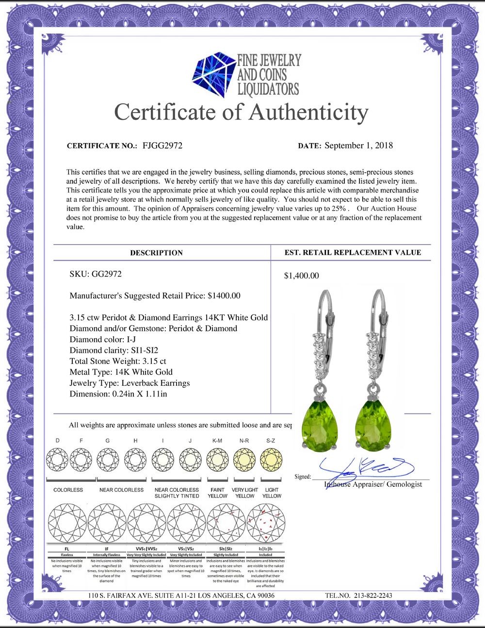 REF-44F3Z - SKU: GG2972 ---- Genuine 3.15 ctw Peridot & Diamond Earrings 14KT White Gold
