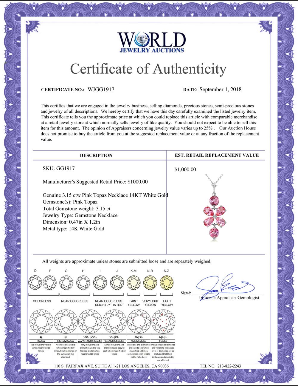 REF-30T3A - SKU: GG1917 ---- Genuine 3.15 ctw Pink Topaz Necklace 14KT Rose Gold