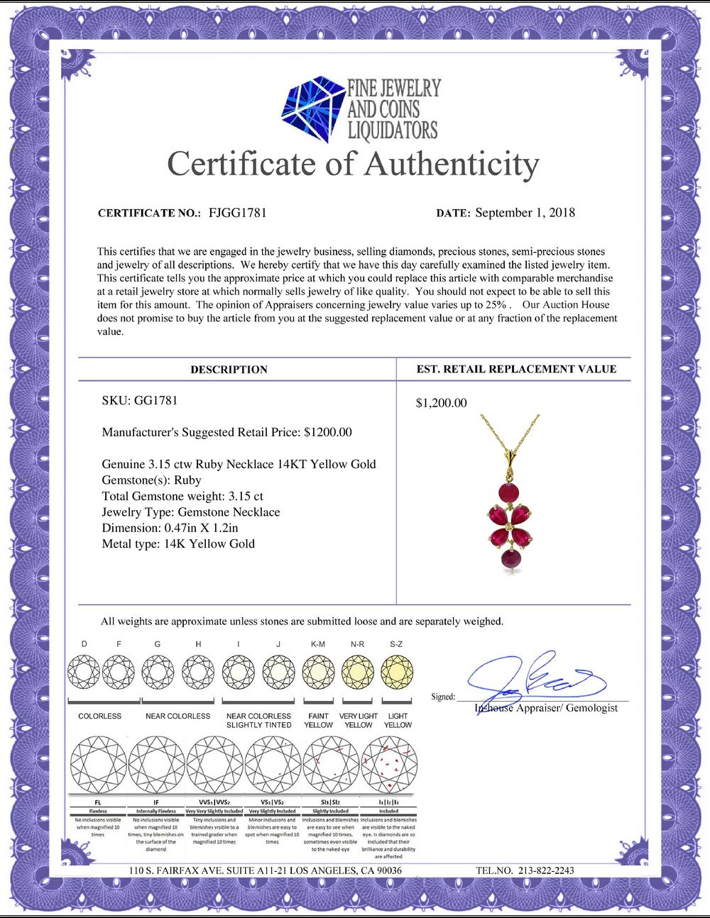 Genuine 14K Yellow Gold 3.15 ctw Ruby Necklace