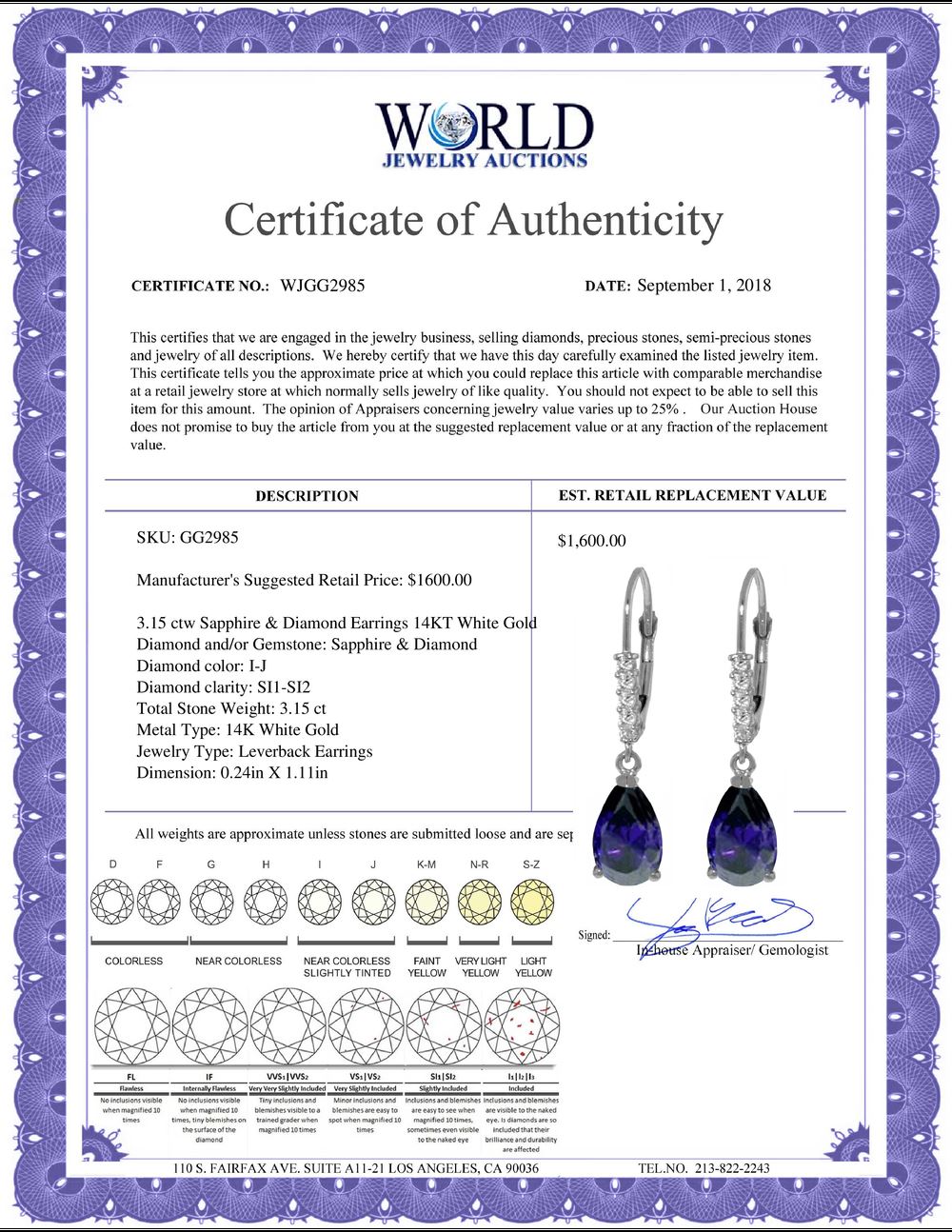 WORLD JEWELRY AUCTION believes to the best of its knowledge that the information presented in any listing has come from reliable sources. Such information is presented solely for the convenience of the Purchaser. WJA makes no warranties of any kind related to the information presented in any listing. WJA further makes no warranties, either express or implied, relating to the value, marketability or condition of the lot described in any listing. Prospective bidders should investigate a lot thoroughly before bidding. By bidding the Bidder acknowledges that Bidder has investigated the lot to his or her satisfaction, or, that Bidder has chosen not to do so, and agrees to accept the lot being bid on with no objections after the sale closes. If you are uncertain please contact us with your questions prior to bidding. If you are still uncertain after we reply, please refrain from bidding. Photos other graphic material contained in any listing of generic or duplicate lots may be stock presentations and not necessarily of the specific lot.