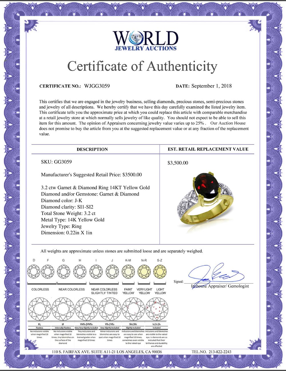 REF-114K3V - SKU: GG3059 ---- Genuine 3.2 ctw Garnet & Diamond Ring 14KT Yellow Gold