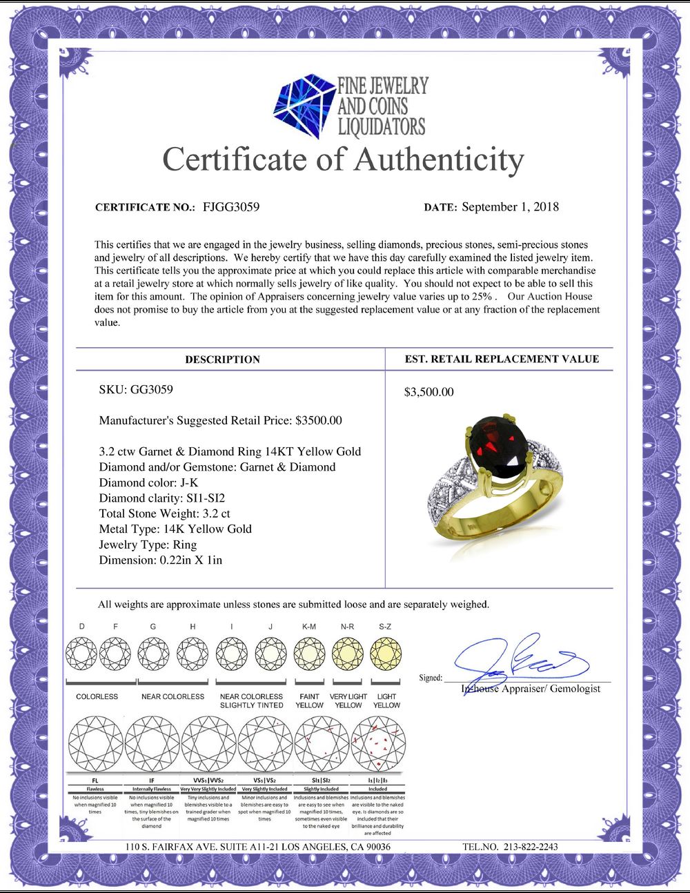 Genuine 14K Yellow Gold 3.2 ctw Garnet & Diamond Ring