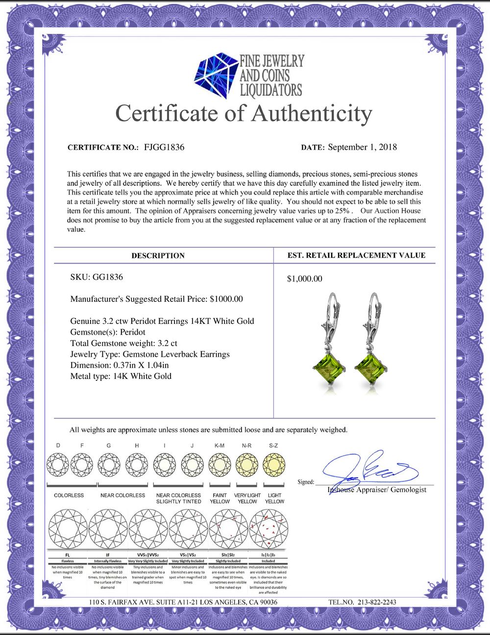 REF-30M2T - SKU: GG1836 ---- Genuine 3.2 ctw Peridot Earrings 14KT Rose Gold