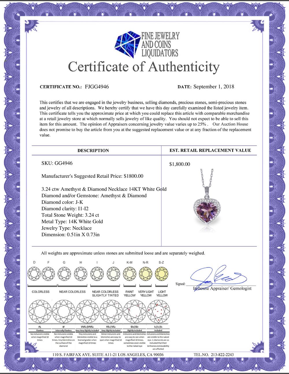 REF-59H3X - SKU: GG4946 ---- Genuine 3.24 ctw Amethyst & Diamond Necklace 14KT Yellow Gold