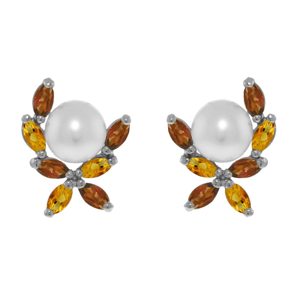 Genuine 14K White Gold 3.25 ctw Pearl & Citrine Earrings