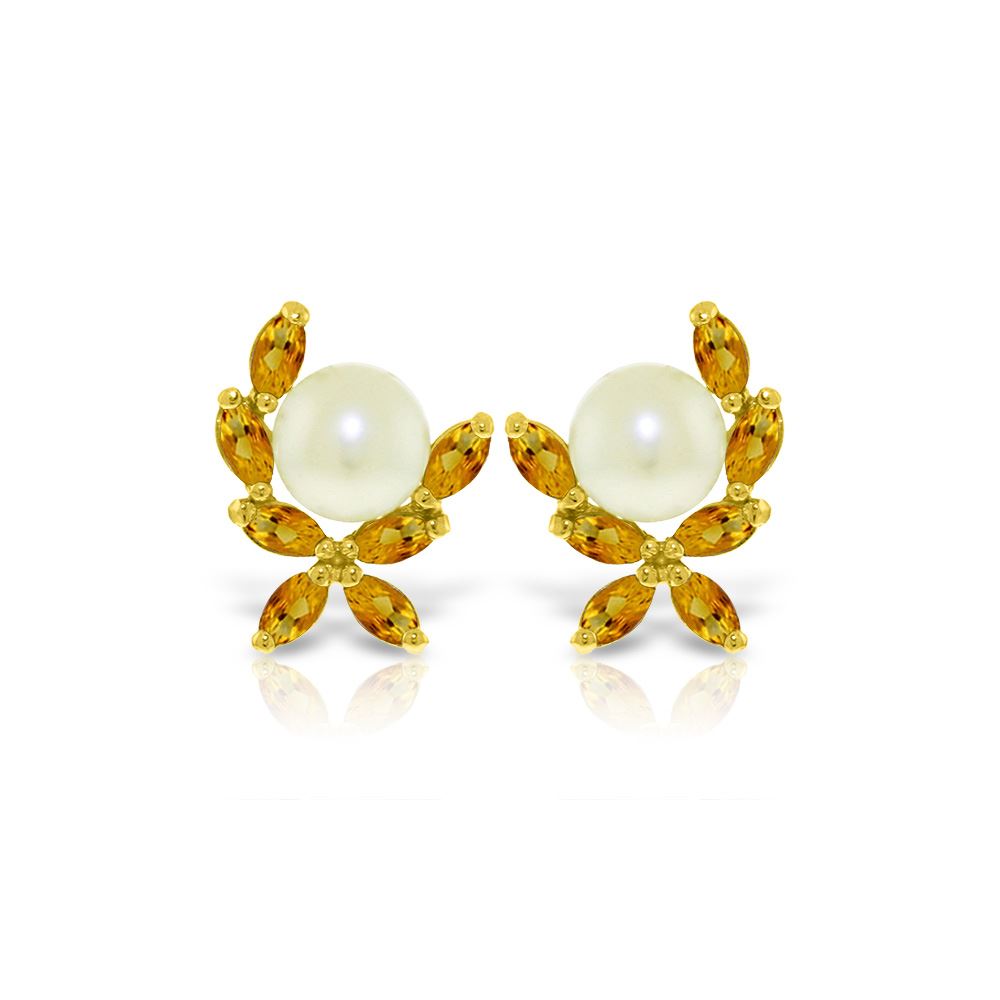 Genuine 14K Yellow Gold 3.25 ctw Pearl & Citrine Earrings