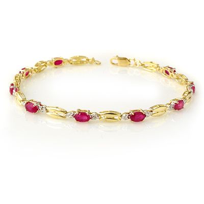 Genuine 3.25 ctw Ruby Bracelet 10K Yellow Gold - Retails for $1230 ---- Gemstone: Natural Ruby----Gemstone color: Red----Gemstone quality: Good-to-Very Good----Gemstone Cut & Weight: 9 Oval cut @ 3.25 ctw----Metal Purity & Color : 10K Gold-Yellow----Gold weight: 4.90 grams----Dimension: Approx. 7 x 1/8----Shipping: Within 15 business days