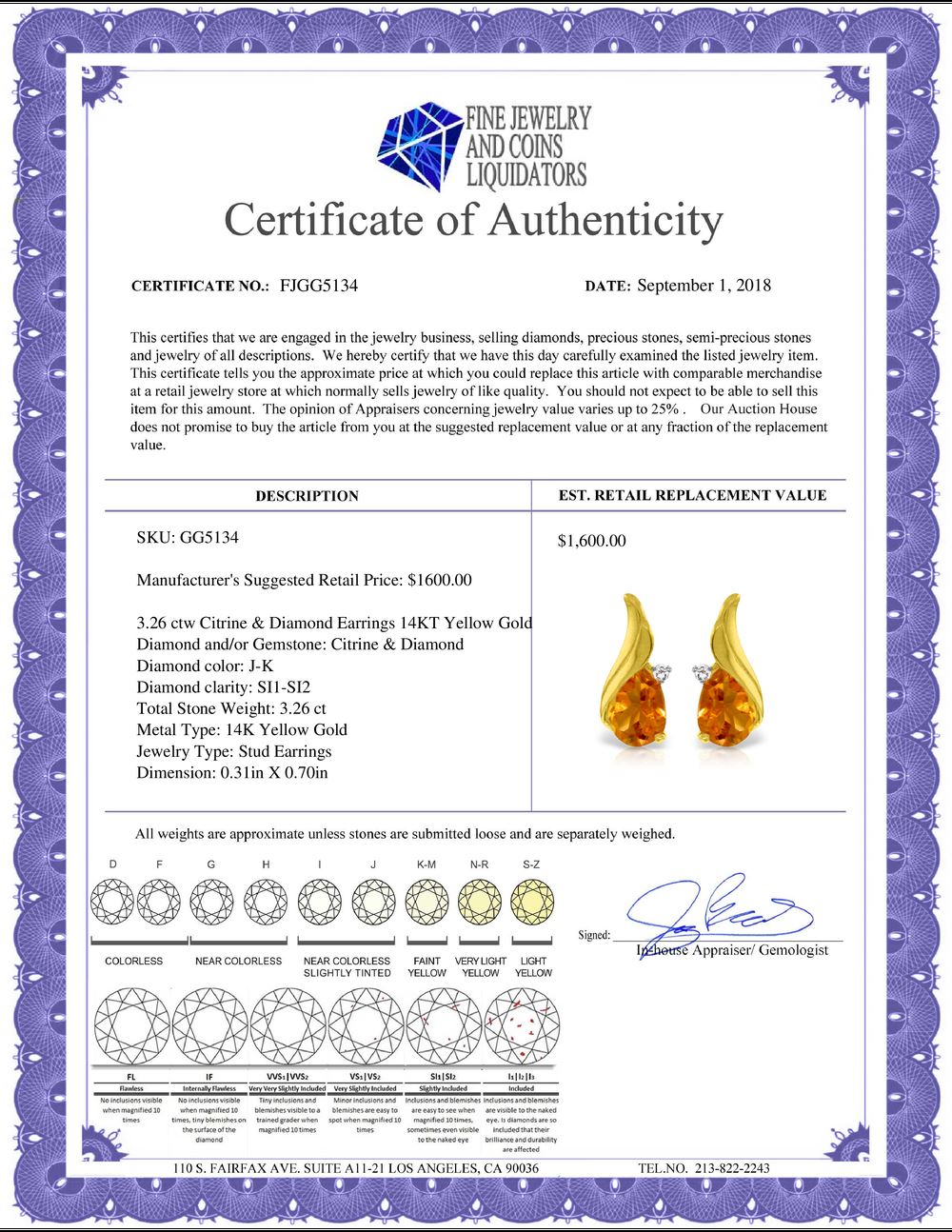 REF-52H7X - SKU: GG5134 ---- Genuine 3.26 ctw Citrine & Diamond Earrings 14KT Rose Gold