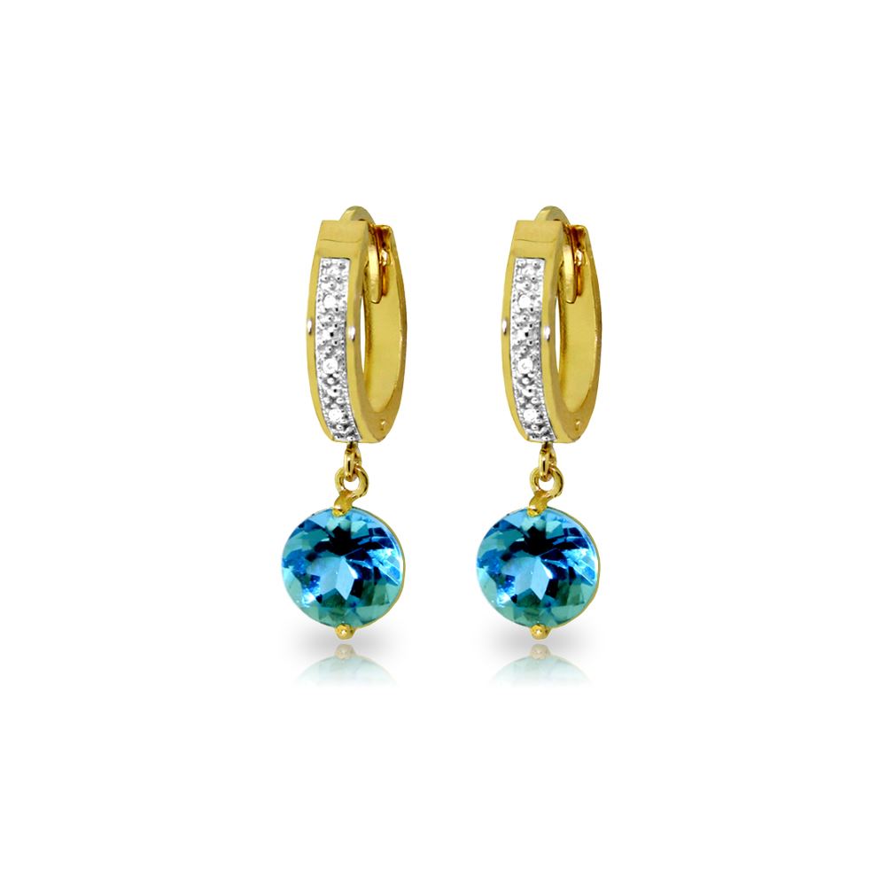 Genuine 14K Yellow Gold 3.28 ctw Blue Topaz & Diamond Earrings