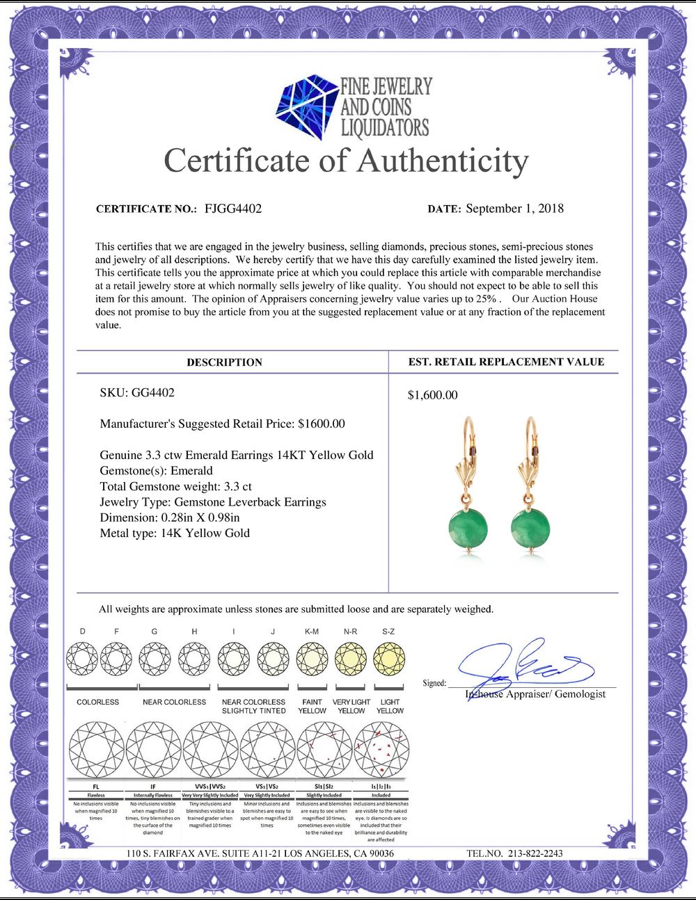 Genuine 14K Yellow Gold 3.3 ctw Emerald Earrings