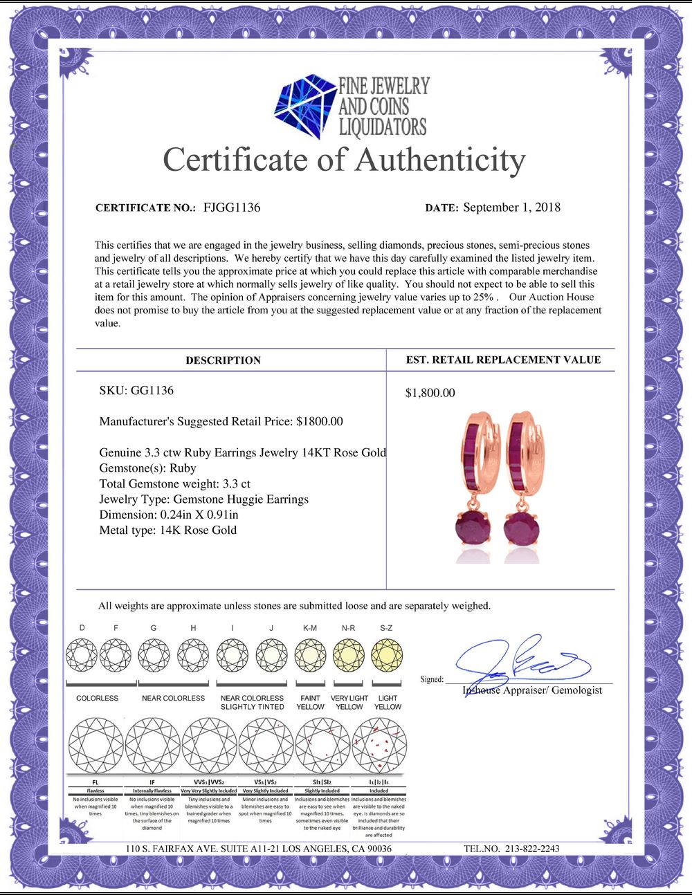 REF-59T2A - SKU: GG1136 ---- Genuine 3.3 ctw Ruby Earrings 14KT Rose Gold