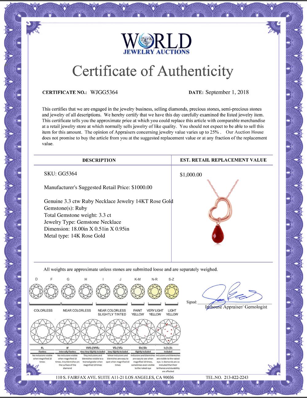 REF-30P7H - SKU: GG5364 ---- Genuine 3.3 ctw Ruby Necklace 14KT Rose Gold