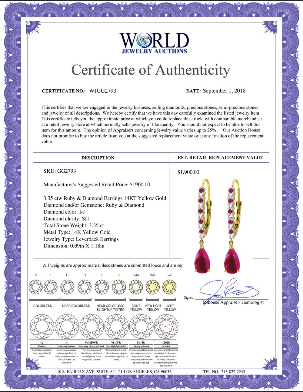 REF-62K4V - SKU: GG2793 ---- Genuine 3.35 ctw Ruby & Diamond Earrings 14KT Yellow Gold