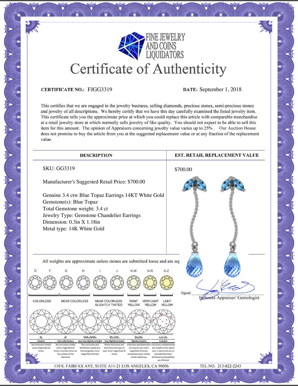 REF-21V6W - SKU: GG3319 ---- Genuine 3.4 ctw Blue Topaz Earrings 14KT Rose Gold