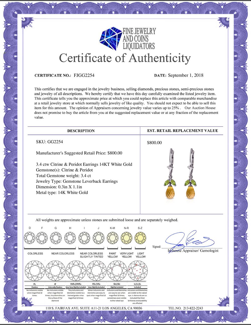 REF-26F6Z - SKU: GG2254 ---- Genuine 3.4 ctw Citrine & Peridot Earrings 14KT Rose Gold