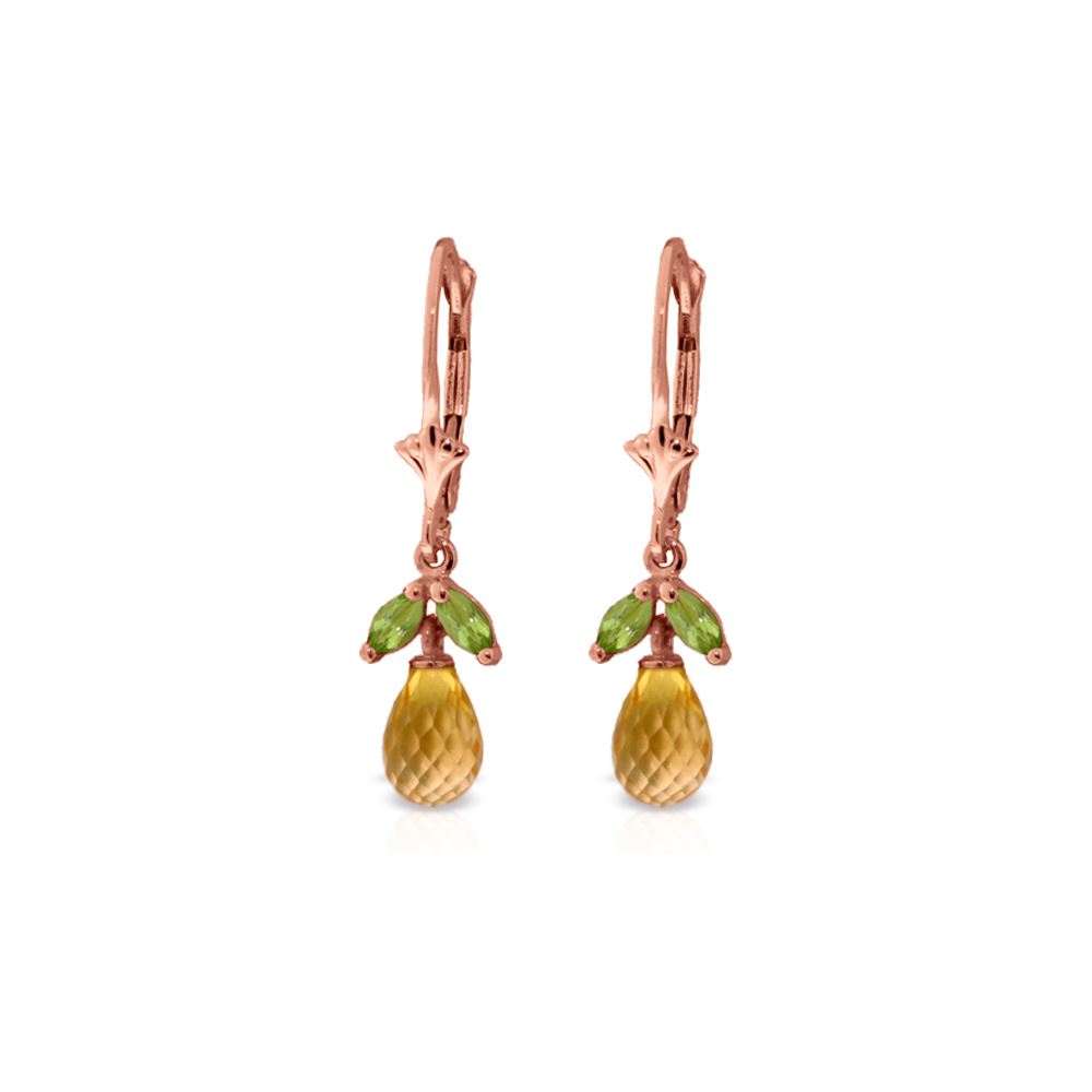 Genuine 14K Rose Gold 3.4 ctw Citrine & Peridot Earrings